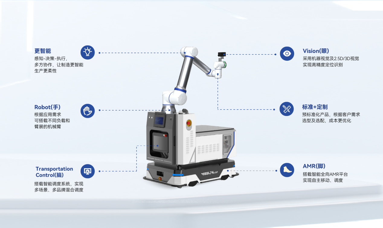 从根本上解决了分散控制导致的性能、稳定性与工程化瓶颈,更标志着复合机器人从此告别简单拼接,成为真正意义上的统一智能体,实现了:感知一体化:多模态感知深度融合,实时理解动态环境;决策自主化:可根据任务意图自主规划路径与操作序列;操作柔性化:在精密装配、物料搬运、柔性产线等场景中,实现“感知-决策-执行”闭环。