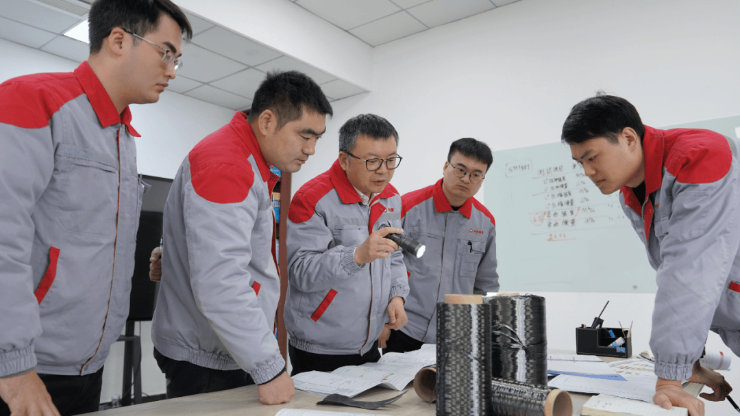 连续半年,团队“两班倒”吃住在厂,研发屡屡碰壁。他以“5加2、白加黑”的工作常态扎根一线,与同事们誓要啃下碳纤维这块“硬骨头”。